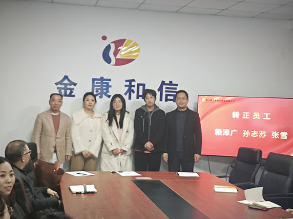 Cum omnibus collegis testibus, tres sodales novos: Lai Zeguang, Design Specialist; Sol Zhisu, Registration Vestibulum; et Zhang Xue, HR Vestibulum – probationem feliciter perfecerunt et familiae JKHX publice factae sunt. Ab explorando et adaptando tempore probationis ad progrediendum cum fiducia postquam plenaria tempora conductos habuerint recognitionem per industriam suam meruerunt, dum etiam novas notiones et vigorem in quadrigis injiciunt.