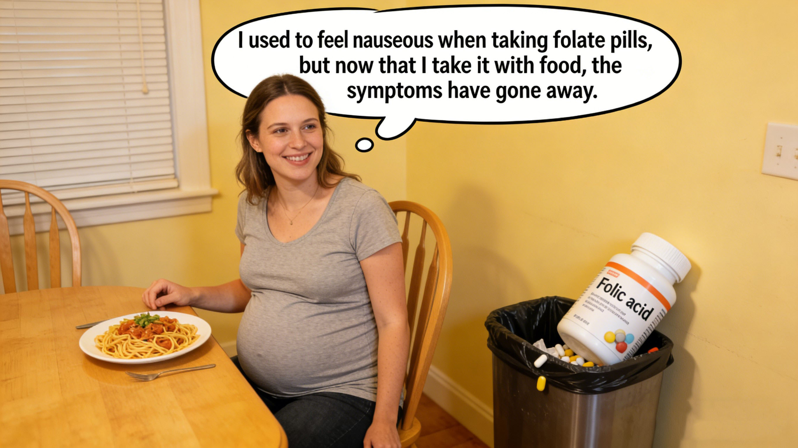 Farina folata-munita utitur activo folatu, nomine Magnafolate®, quod immediate absorberi potest sine conversione metabolicae in corpore. Mater expectans simpliciter duos cyanos vaporatos in mane comedit et phialam noodles in meridie, et eius folatium attractio quiete suppletur. Deglutitio nulla difficultas, nulla memoria opus est, nulla omnino medicinalis sensus.